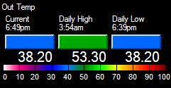 | Low Temperature | 38.2°F at 6:39pm | ||