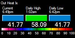 | High Heat Index | 58.1°F at 1:02am | ||